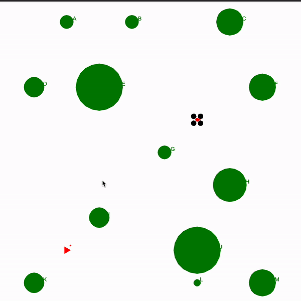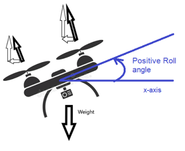 Here you will be controlling a drone's tilt (i.e. roll angle) and thrust to get it to the goal