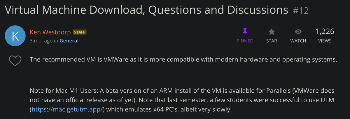 Basically, you just need to follow some instructions to download a Virtual Machine image that the TA's made for the class