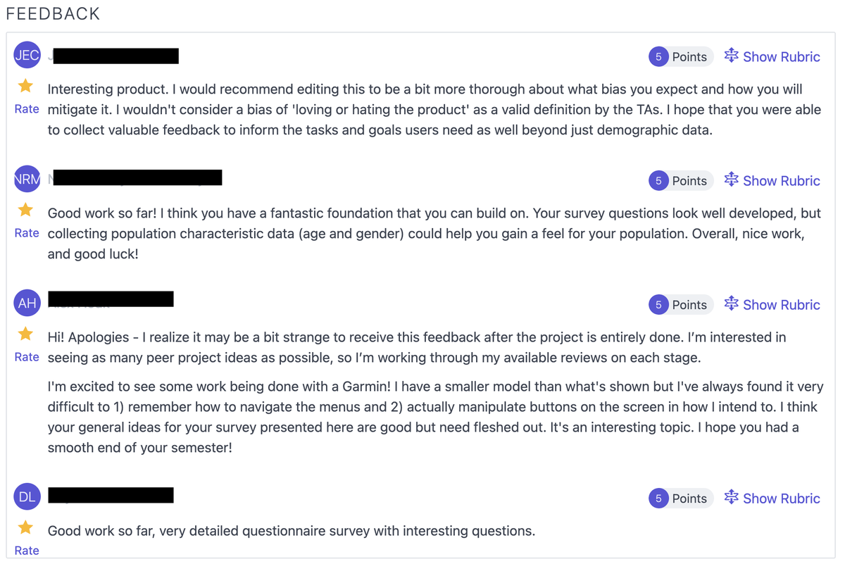 - Super tedious 💀 just have to give your feedback to three peers' assignments