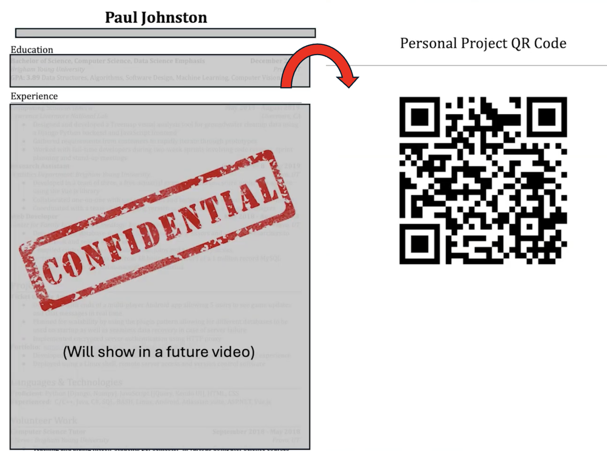 I put a QR code to my personal website I built, on the BACK of my resume, and when recruiters asked the typical “Tell me about yourself”, I would just say “Flip that resume over and scan that QR code to see a website of all my achievements” and literal smiles would break out on their faces because it was finally something different from the routine thing they had heard from 100’s of students that day 🙂