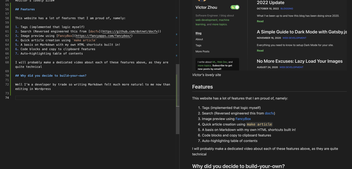 Well I’m a developer by trade so writing Markdown felt much more natural to me now than editing in Wordpress