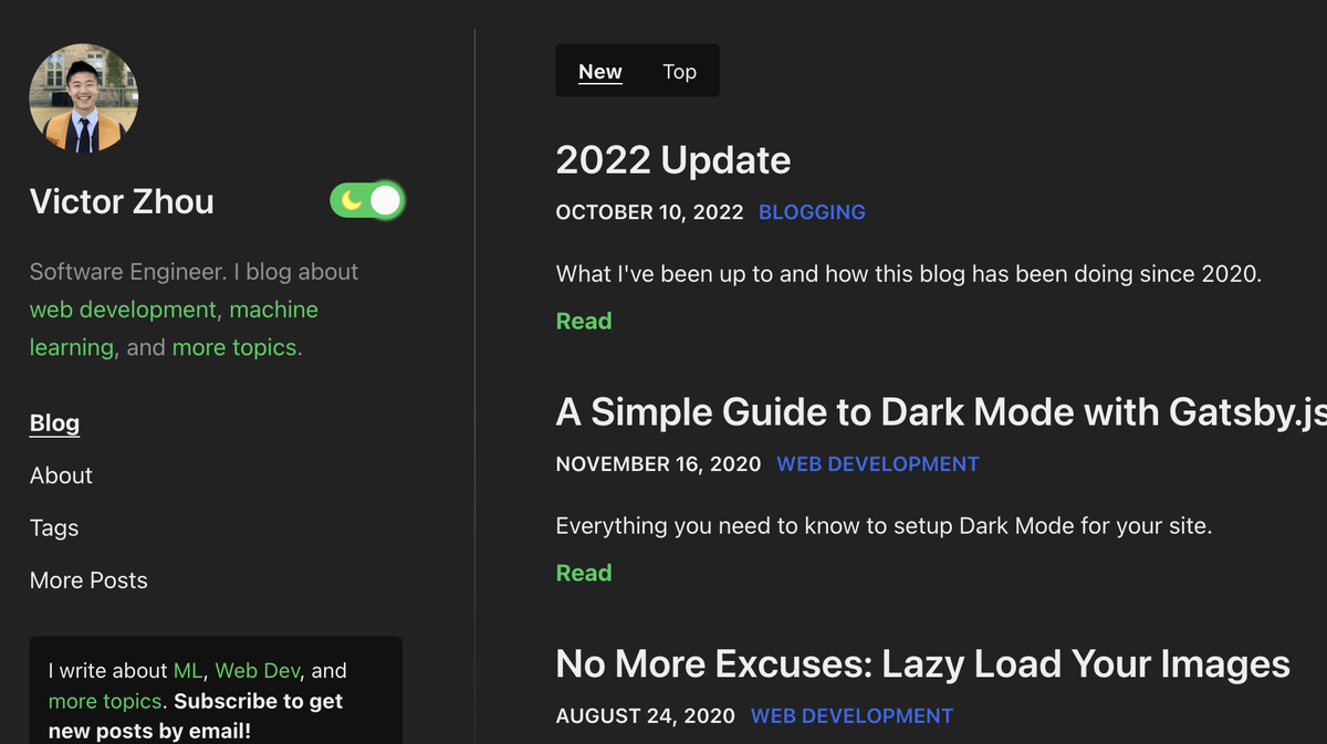 I also did take great inspiration from Victor Zhou’s blog which looks very aesthetically pleasing and has tags (yoinked that feature for myself)
