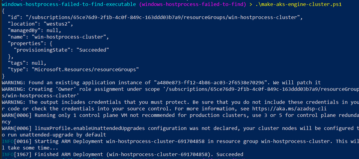 To create a Windows HostProcess capable Kubernetes cluster we will use AKS-Engine