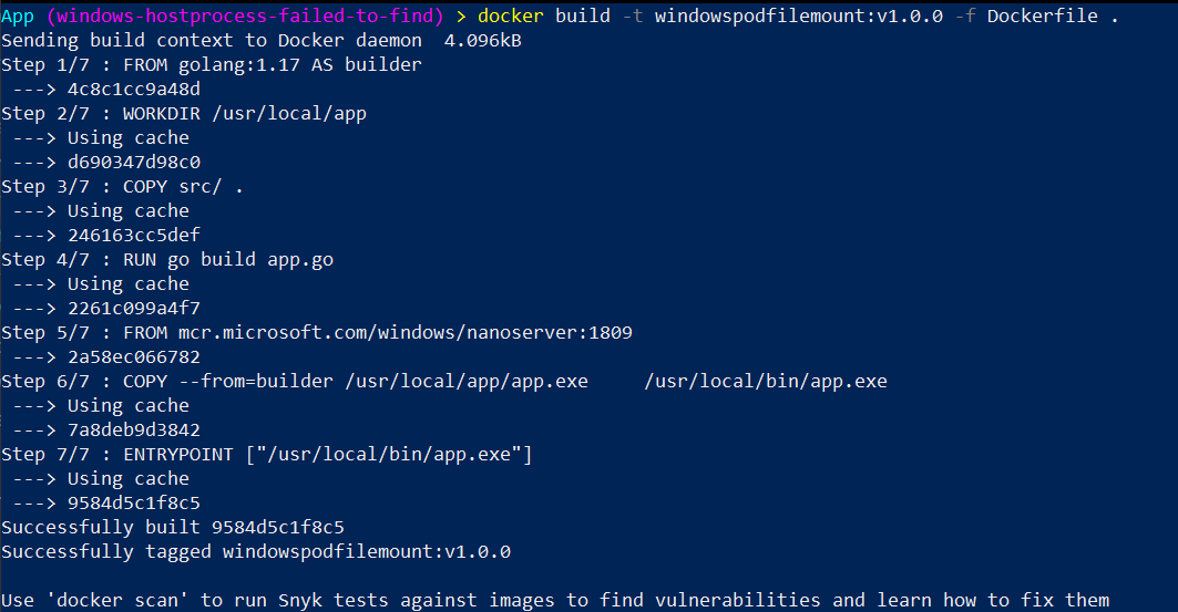 Next we deploy the app in a Windows pod with the host file system mounted as a volume.